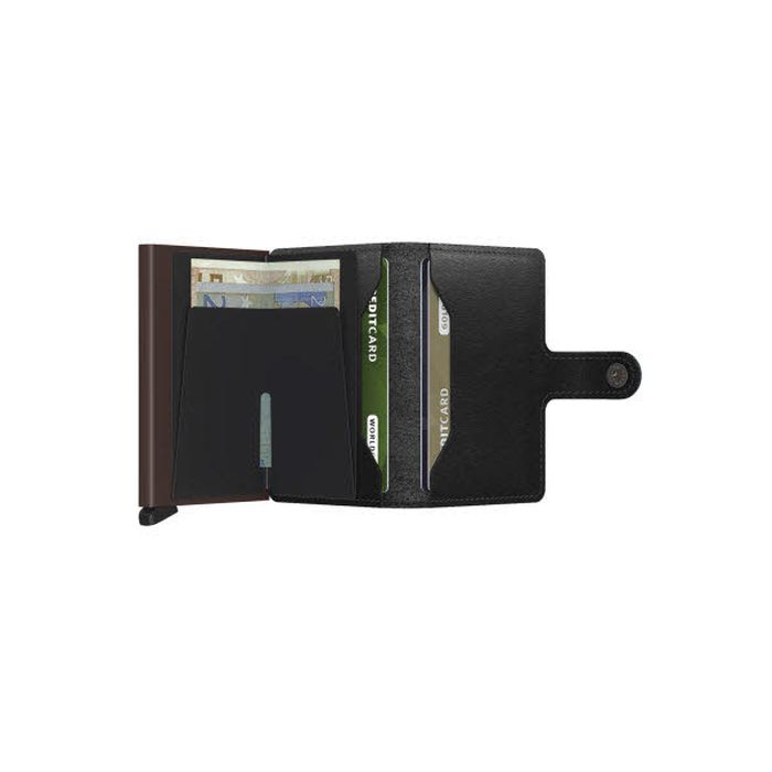 Die Miniwallet ist klein und doch überraschend groß, es kombiniert das Beste aus beiden Welten. Während sich auf der einen Seite Banknoten, Quittungen und Karten, leicht verstauen lassen, können Sie auf der anderen Seite mit dem Aluminium Cardprotector Ihre Karten mit einer einfachen Bewegung herausschieben. Außerdem sind Ihre Karten vor Biegen, Brechen und vor unerwünschter drahtloser Kommunikation geschützt.
